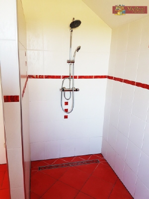 Das Haus gliedert sich in Vorraum, großer Küche, Wohnzimmer, Büro, 3 Schlafzimmer, 2 Badezimmer, 2 WC, begehbarem Schrank und mehreren Abstellräumen.