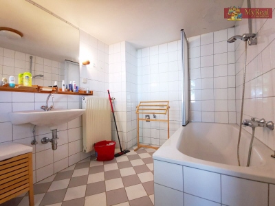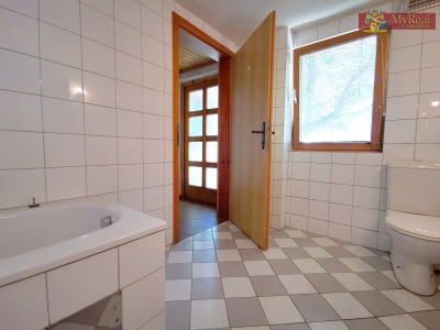 Ein voll ausgestattetes Badezimmer mit Badewanne und WC bietet zusätzlichen Komfort.